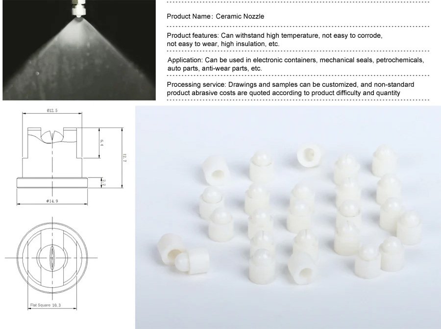 High Pressure Ceramic Nozzle Products / High Pressure Ceramic Nozzle Product Application Gas Scrubbing Tank Cleaning Cleaning & Washing Dust Control Food Industry Coating Petrochemical Paper & Pulp Steel Industry Electronic Industry Humidification Garden Maintenance Fire Protection Special Nozzles Single Fluid Nozzle Tank Cleaning Nozzle Desulfurization Nozzle Cleaning Nozzle Alloy Nozzle Ceramic Nozzle Gem Nozzle Oil Nozzle Plastic Nozzle Dual Fluid Nozzle Adjustable Atomizing Nozzle Non-Adjustable Atomizing Nozzle Automatic Air Atomizing Nozzle Cosmetology Instrument Atomizing Nozzle Micron Spray Humidification Tank Spray Nozzle Patterns Fan Nozzle Spiral Nozzle Full Cone Nozzle Hollow Cone Nozzle Solid Stream Nozzle Solenoid Valve Nozzle Air Atomizing Nozzle Dry Fog Humidification Dry Fog Nozzle SEND US A REQUEST High Pressure Ceramic Nozzle Category: Cleaning nozzle Product Material: Various Materials Work Pressure: Choose according to the use environment Operating Temperature: Different materials correspond to different temperatures Angle: Refer to the performance parameter table REQUEST A QUOTE Video Description: Spray angle: 50°, Flow rate: 0.22 L/min, Spray pressure: 3 bar Related: AF Hollow Cone Nozzle Corner Hollow Cone Nozzle Tungsten Carbide Fan Nozzle DJ Automatic Air Atomizing Nozzle PVDF Fan Nozzle